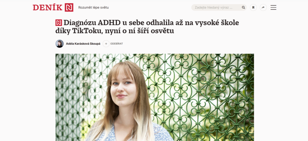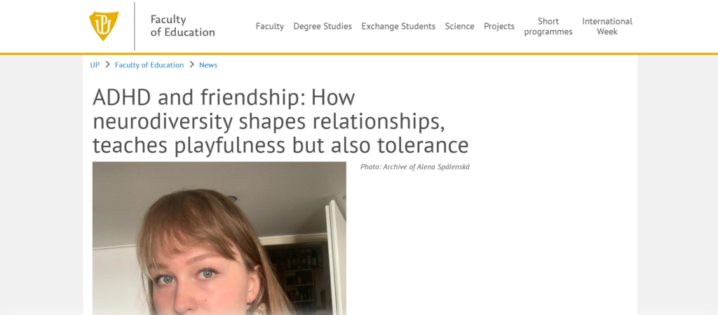 Můžete mě vídat v Národním ústavu duševního zdraví, kde pracuji jako Specialistka poruch osobnosti. Také se mé jméno objevuje v časopisu Nový Prostor, kde píšu o duševním zdraví a psychologii. A v neposlední řadě se se mnou můžete potkat na Filosofické fakultě, kde dokončuji poslední semestr navazujícího magisterského studia Psychologie.