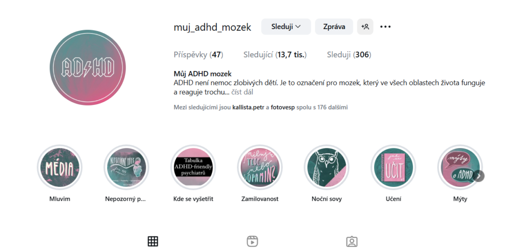 Lidé mají o ADHD často velmi zkreslenou představu. Týká se to bohužel i mnohých odborníků. Nelíbilo se mi, jak k lidem s ADHD v naší společnosti přistupujeme, už několik let se proto věnuji osvětové činnosti o realitě života s touto poruchou. Můžete mě sledovat na @muj_adhd_mozek.